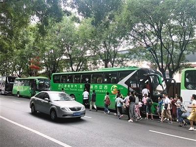 “大巴车太高了,停在路口或者斑马线附近,把行人和司机的视线都挡住了。”市民刘女士每天上班开车都要经过此处,她说,大雁塔是西安地标建筑,每天有旅游团来此游玩,赶上旅游旺季,这条路就变成了停车场。最可怕的是,游客都在机动车道上下车,开车经过这里时,她都小心翼翼,生怕撞到人,或者碰到别人的车。