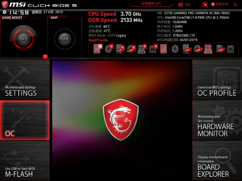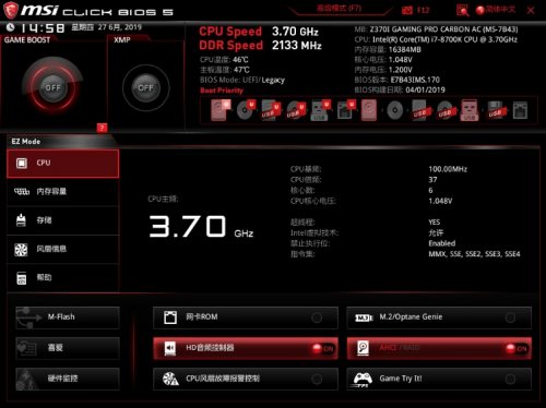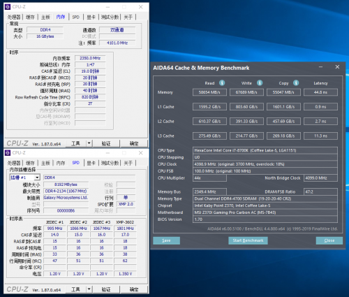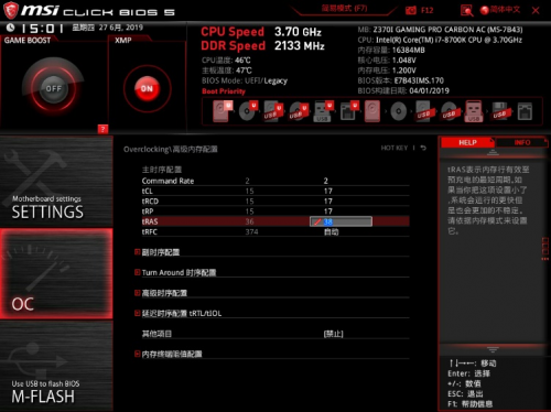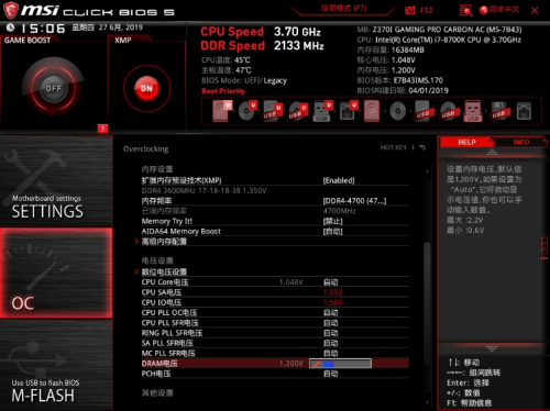 电脑开机,频率4700MHz,时序19-20-20-40。