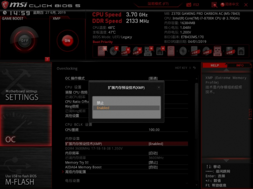 HOF Ⅱ DDR4-3600支持XMP2.0,所以我们在主板BIOS中开启XMP功能,就能一键将其频率从初始频率提升至3600MHz。