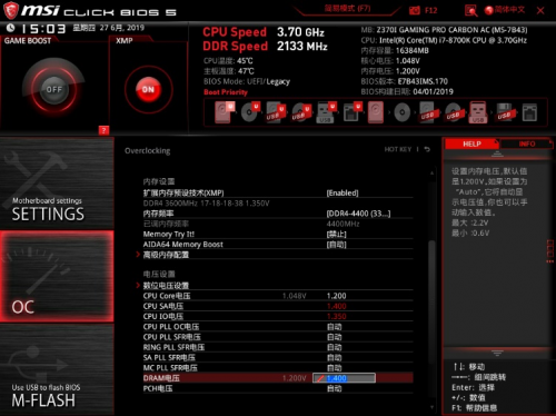 按【F10】保存退出,此时频率4400MHz,时序18-18-18-38。
