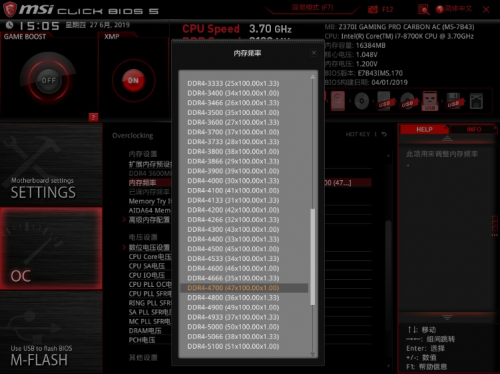 频率越往上,增加的幅度就越小。所以为了安全起见,我们将频率定在4700MHz。